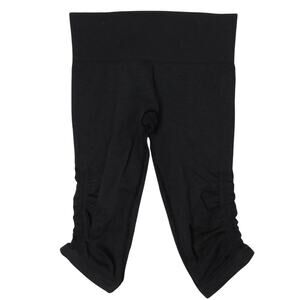 Lululemon The Flow Crop II Black Cropped Leggings with Ruching on Sides. Mid Rise Leggings in Size 6. Hole Between Legs Requires Repair. Right on the Seam, if You Know How to Sew,Tags Removed