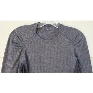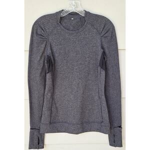 Lululemon Think Fast Long Sleeve Rulu Top Heathered Herringbone Gray Black Sz 6