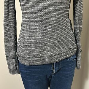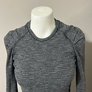 Lululemon Think Fast Long Sleeve Top Heathered Grey Black Rulu Running Sz 4