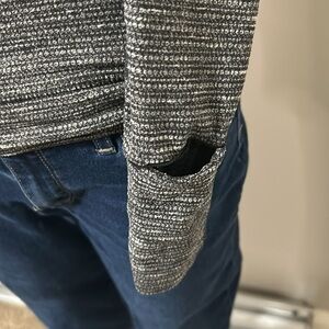 Lululemon Think Fast Long Sleeve. The color is Heathered Herringbone Heathered Black. This cozy base layer is designed to keep your workouts outside as the temperature drops.