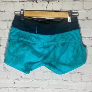 Lululemon 6 Speed Short Surge Spray Dye Turquoise Blue size 4 in great condition. Measurements shown in pictures