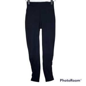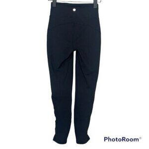 Lululemon Tied To It 7/8 Tight 25" Black Size 4 High Rise Lace Up Mesh Hems EUC. Gently used.No holes Size 4 Waist: 11.5 inchesRise: 10 inchesInseam: 25 inches