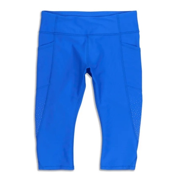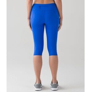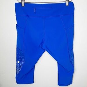 Lululemon Tight Stuff Crop Leggings Reflective with Side Pockets Cerulean Blue