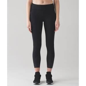 Lululemon Tight Stuff Tight II Womens 8 Black Gray Reflective Dots Scallop Hem
