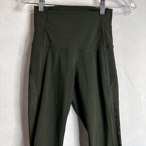 Lululemon Time to Sweat Crop Green Leggings Side Pockets Womens 4 25" Yoga Gym