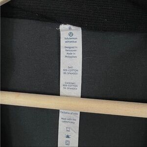 Lululemon To Class Jacket in Sea Bed Black Deep Coal / Black. Stretch French Terry fabric. Multiple pockets. Double collar. Hidden Thumbholes. Button closure. Excellent condition. Size 8