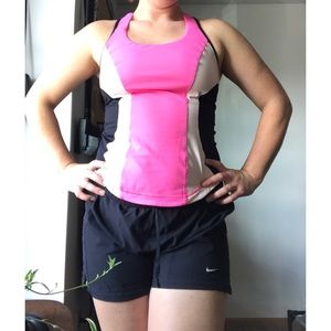 Comes with pocket on bottom back of shirt that allows ear buds to fit through