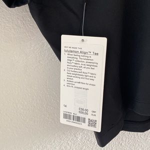 Lululemon Align short sleeve - nulu fabric, weightless and buttery soft. Sweat-wicking and four-way stretch. Added Lycra fibre for stretch and shape retention.