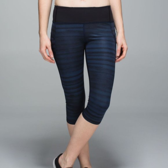 Lululemon Top Speed Crop (Good Vibes Deep Navy Black/Black) - Size 8