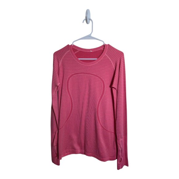 This Lululemon top for women is perfect for any active occasion. With its red and striped pattern, it's sure to stand out while you're working out. The crew neck and long sleeves provide a comfortable fit, while the pullover closure makes it easy to put on and take off.