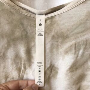 Lululemon Top Womens 6 Beige Crescent Tie Dye Front Tie Logo Gym Active