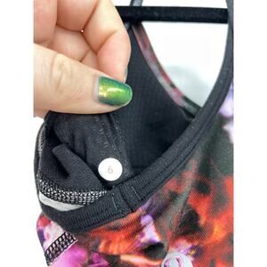 Lululemon Womens Size 6 Tank Top No Limits Black Spring Has Sprung Multi Built In Bra. Good Preowned Condition.