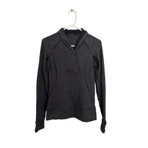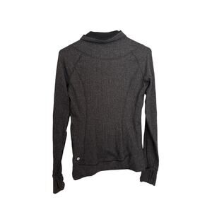 Lululemon Top Womens 6 Think Fast Pullover Heathered Herringbone Black 1/4 Zip. Good Preowned Condition.
