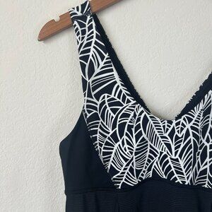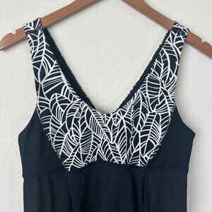 Lululemon Top Womens 8 Black White Floral Leaf Athletic Hustle Bustle Tank