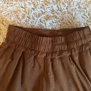 Description: high rise, hidden zippered pocket, liner, drawcord waist band
