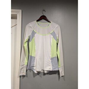 Lululemon Trail Bound Colorblock Long Sleeve Shirt Top White & Clear Mint Sz 10
