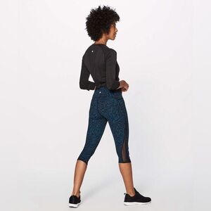 Lululemon Train Times Crop 17” Black Blue Mesh-Panel Capri Leggings Size 6