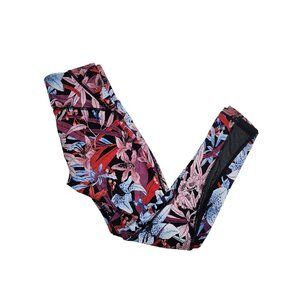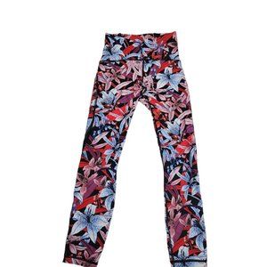 Lululemon Train Times Flower Red Pink and Blue 7/8 Leggings, Size 4