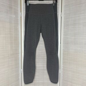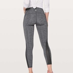 ✨ Lululemon gray leggings. Dark gray mesh side panel. Hidden waistband pockets. Mid-rise. Good used condition!