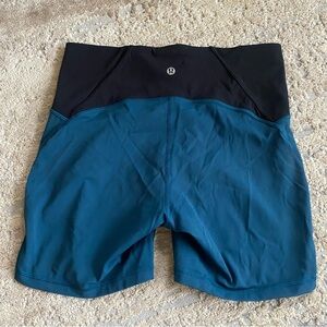 Lululemon Train Times Short 6" in Nile Blue / Black Biker Shorts Teal: Size 10