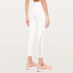 Lululemon Train Times White 7/8 length leggings with mesh accent.