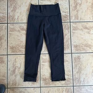 Lululemon True Self Crop Leggings Black Lattice Detail Luon Fabric Size 4