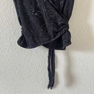Lululemon True Wrap Cropped Tank Top Fits Small Medium Gym workout Athleisure in great condition / side and stretchy/ No Size Tag- Please see all Measurements for sizing/ adjustable Tie / Black with white Speckles