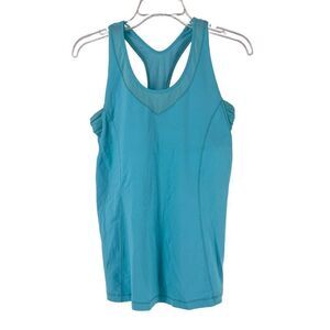 Lululemon Turbo Tank Women's Size 10 Aqua Blue Built In Bra Active Wear Scoop Neck Top
