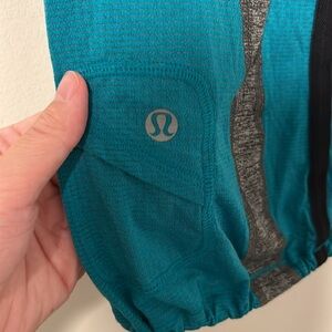 Lululemon Turquoise Gray Drawstring Ruched Short Sleeve Workout Top Size 2.