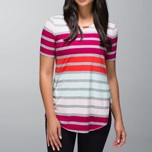 Lululemon Turquoise Gray Drawstring Ruched Short Sleeve Workout Top Size 2
