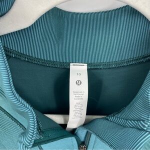 Lululemon Two-Tone Ribbed Running Half Zip Sz 10 teal LW3GOBS