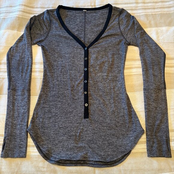 Lululemon V-Neck Long Sleeve Henley | Thumbholes | Heather Grey w/ Black Trim |
