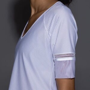This technical top is designed for tough workouts, from interval running to boot camp and cardio classes. The smooth Mesh fabric is lightweight and cool to the touch with added reflective details so we can sweat into the night.