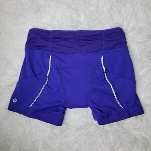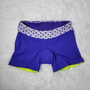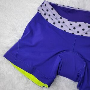 Lululemon Velo Vixen Padded Purple Polka Dot Waistband Reflective Cycling Bike Shorts Size 10