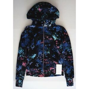 Lululemon W4C68S Women's Sz 8 Black Floral Scuba L/S Full Zip Hoodie RARE