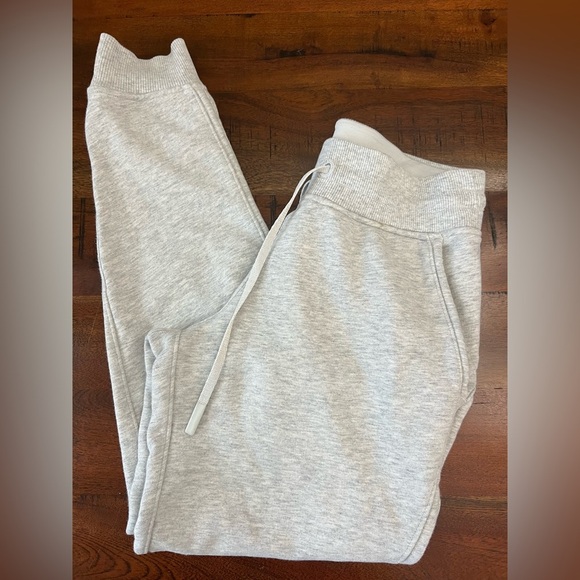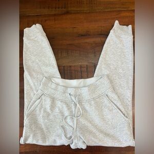Keywords: Lululemon Warm Down Joggers, Heather Core Gray Sweatpants, Cotton Terry Lounge Pants, Size 4 Lululemon Joggers, Cozy Athleisure, Women’s Lululemon Pants
