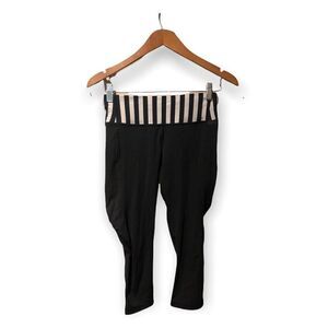 Lululemon Water Bound Crop Size 4 Black Apex Stripèe Printed Black Dune EUC.