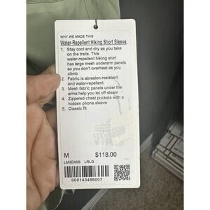 Lululemon Water Repellent Hiking Short Sleeve Shirt LRLG Men's Size Medium NWT