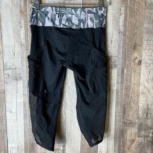 Lululemon Water: Sea Me Run Prickly Pear Crop sheer Black Leggings