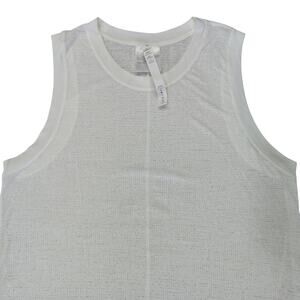 Lululemon White Athletic Tank Muscle Long Line Crew Neck Women's Size 8 Sheer