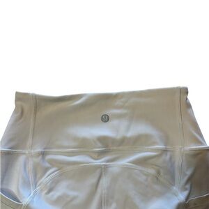Stylish white high-waisted Lululemon leggings. Perfect for workouts or casual wear. The tag is torn out of the leggings but seems to be an XS or Small since they have a stretch.