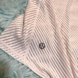 Lululemon white mesh striped workout top in good condition. Lightly worn. No rips or stains. Tag has been cut out. Size medium. See pictures.