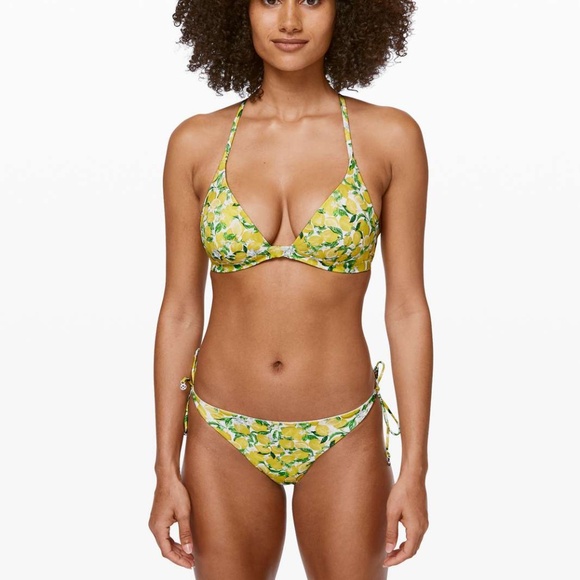 Lululemon White Multi Deep Sea Swim Sun Soaker Bikini Lemon Print Size 6