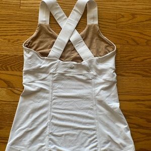 This is a white, pre-owned Lululemon White Push UR Limits tank in a size 4 that no longer fits me :(.