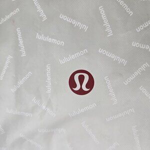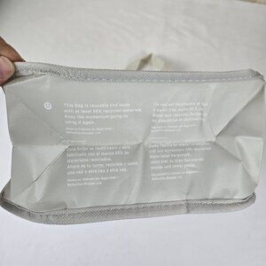Welcome to sustainability with this reusable bag. Do good for the environment by keeping this bag handy and using it for your everyday needs - lunch, makeup, change of clothes, etc. Or give a gift in it. Features double handles in white, a snap closure at the top and folds flat for easy storage. Clean up is easy as well. Lululemon logo pattern all over.