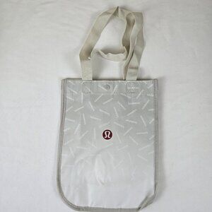 Lululemon White Reusable Tote Bag with Logo Double Handles Snap Top Closure