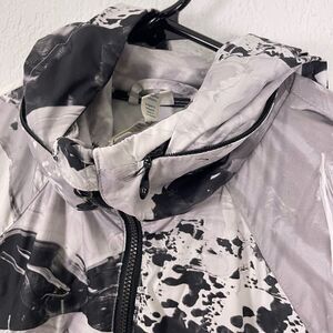 Lululemon White with Black & Grey Abstract Patterned Hooded Windbreaker Jacket