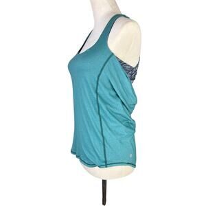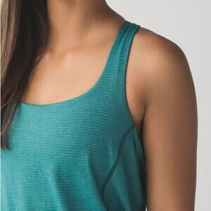 Lululemon Wild Tank Teal Black Stripe Multi Strap Draped Back Layered Yoga Top