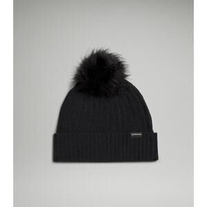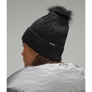 Lululemon Woman Cable Knit Pom Beanie Hat Black New $54 Retail
