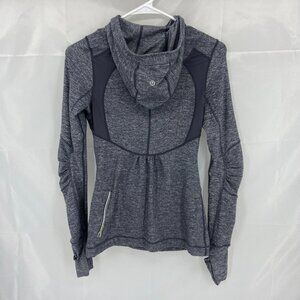 Lululemon Women 4 1/4 Zip Pullover Jacket Ruched Ruffled Stretch Thumbholes Blue
